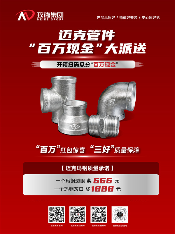 即日起,凡購買(mai) 新利娱乐体育官网邁克牌瑪鋼、溝槽管件,有機會(hui) 參與(yu) 開箱掃碼瓜分 “百萬(wan) 現金” 活動!