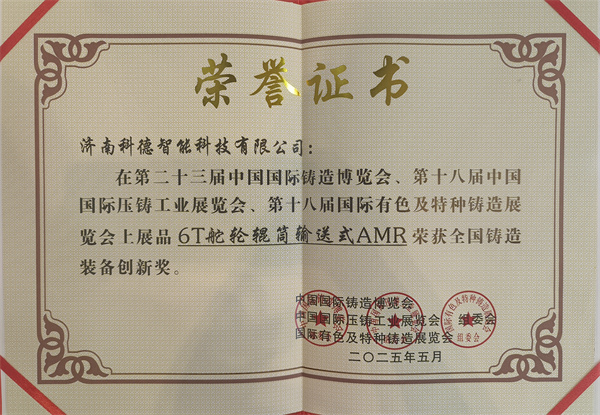 濟南科德智能科技有限公司的6T舵輪輥筒輸送式AMR摘得“全國鑄造裝備創新獎”。