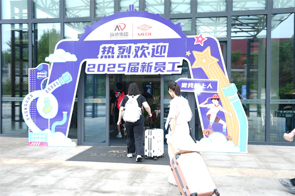 清晨伊始,濟南各交通樞紐的玫德接站專(zhuan) 員已高舉(ju) 標識牌,熱情迎接遠道而來的新生力量。新員工們(men) 乘坐專(zhuan) 屬大巴陸續抵達平陰總部玫好酒店及科創中心報到點。現場流程清晰高效:從(cong) 行李寄存、材料核驗、合同簽署,到人才公寓入住指引,每個(ge) 環節均有專(zhuan) 人引導協助。集團貼心地在大廳設置休息區並播放企業(ye) 宣傳(chuan) 片,讓新員工在等待間隙感受玫德文化。一句句細致的解答、一份份裝袋完備的入職資料,無不傳(chuan) 遞著集團對新員工的重視與(yu) 關(guan) 懷。