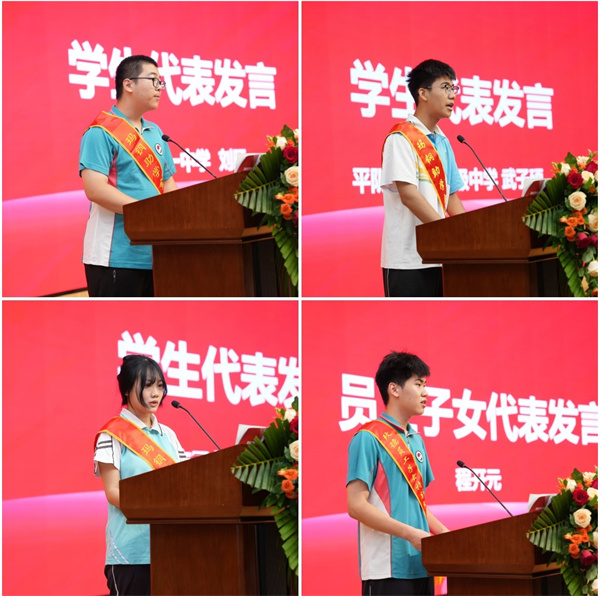 平陰一中劉暘、平陰實驗高中武子碩、平陰工業(ye) 學校王國慶和新利娱乐体育官网員工子女程開元作為(wei) 學生代表分別發言,誠摯感謝新利娱乐体育官网的鼎力支持,感恩瑪鋼助學基金二十年如一日的守護。他們(men) 表示,無論身在何方,都會(hui) 做家鄉(xiang) 的宣傳(chuan) 者,做玫德精神的傳(chuan) 承者!